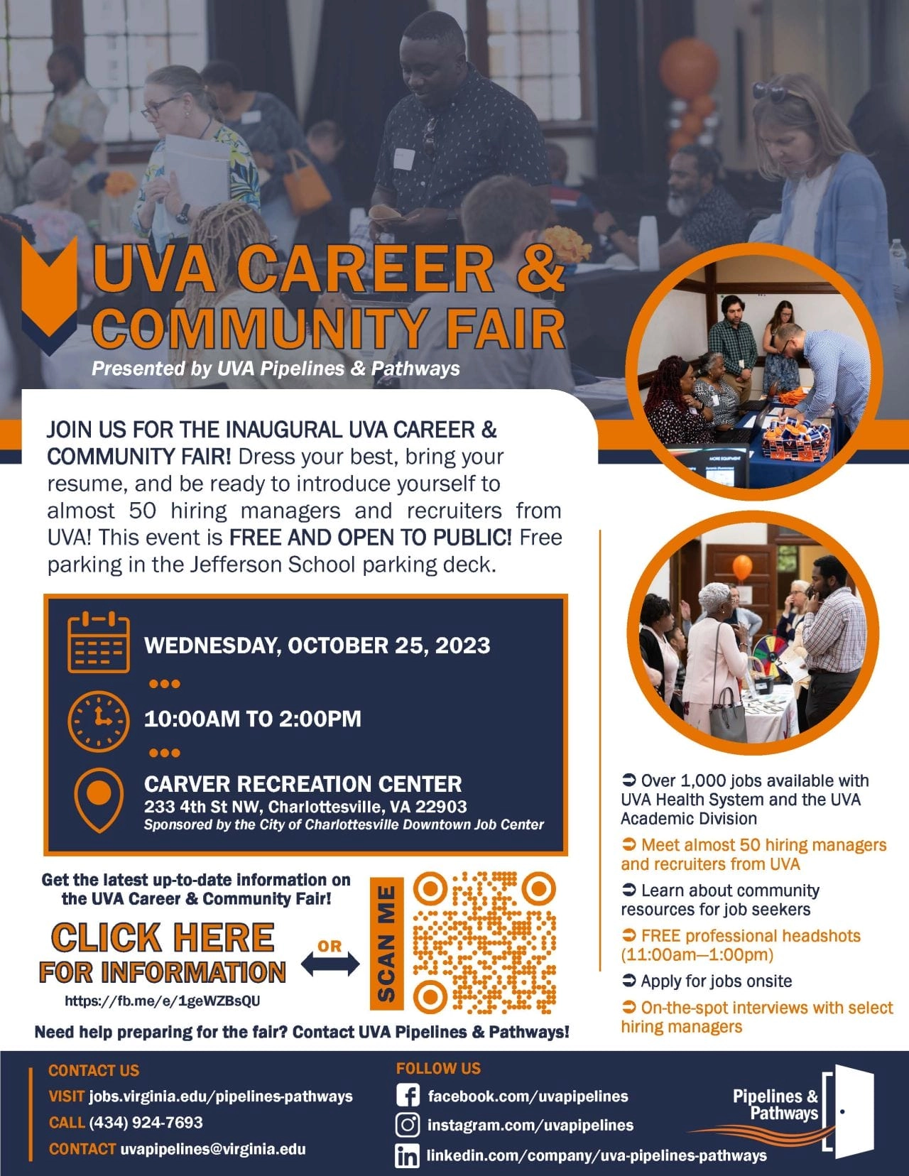 UVA Career Community Fair Flyer (10.25.23) Stephanie McNamara2023-09-26T11:45:52-04:00September 26th, 2023| Share This Article FacebookXLinkedInEmail